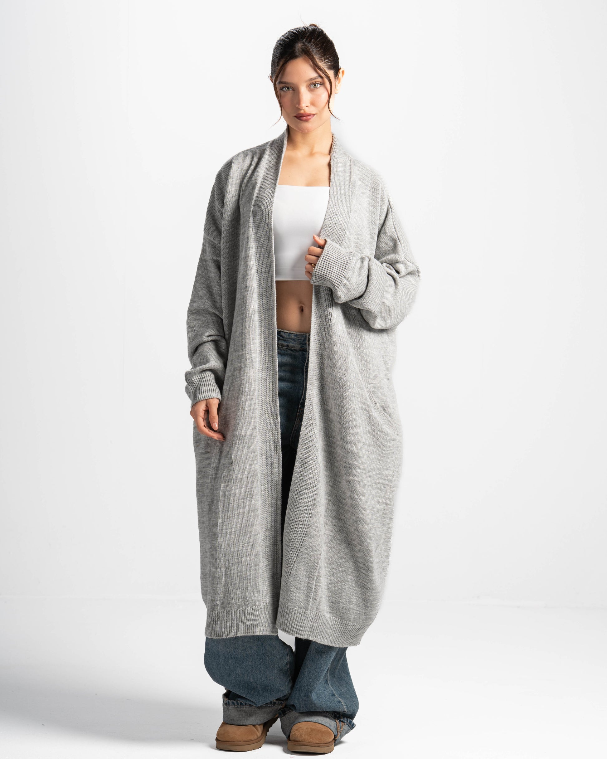 A long, lightweight knit cardigan with an open-front fit and effortless flow—ideal for layering over any outfit.